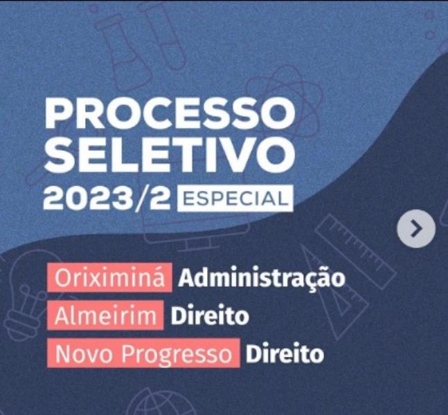 A Universidade Federal do Oeste do Pará (Ufopa) lançou o edital do Processo Seletivo Especial 2023 II (Prosel ESP Ufopa 2023 II), destinado ao provimento de vagas nos cursos de Administração em Oriximiná e Direito em Almeirim e Novo Progresso. A ação resulta de convênio celebrado entre a Ufopa e a Secretaria de Estado de Ciência, Tecnologia e Educação Profissional e Tecnológica (SECTET) do Pará, por meio do Forma Pará, em parceria com as prefeituras municipais.