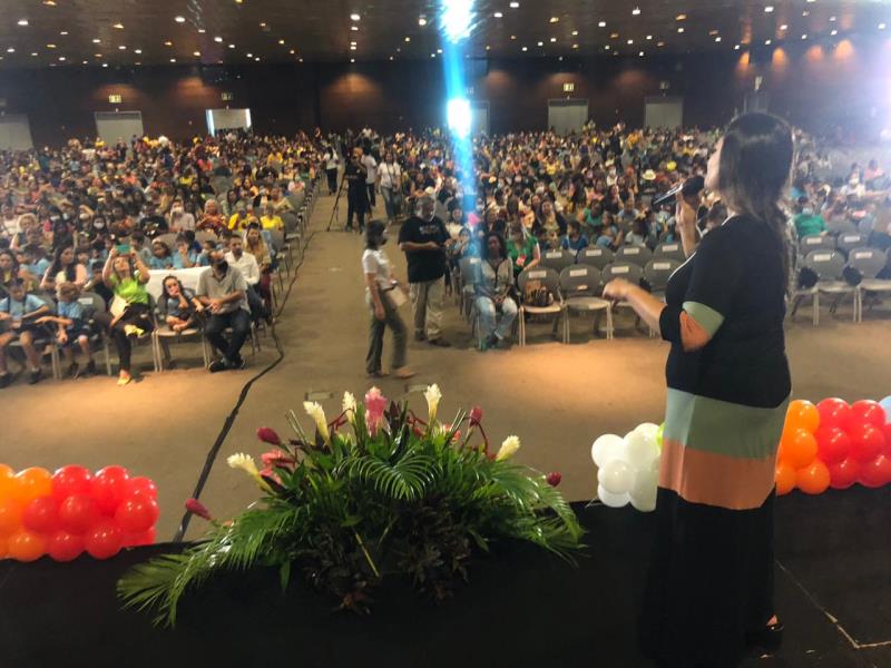 A secretária Márcia Bittencourt fez a abertura saudando os participantes do evento, que é a culminância de um ano de dedicação às estudantes e aos estudantes de Belém e suas comunidades.