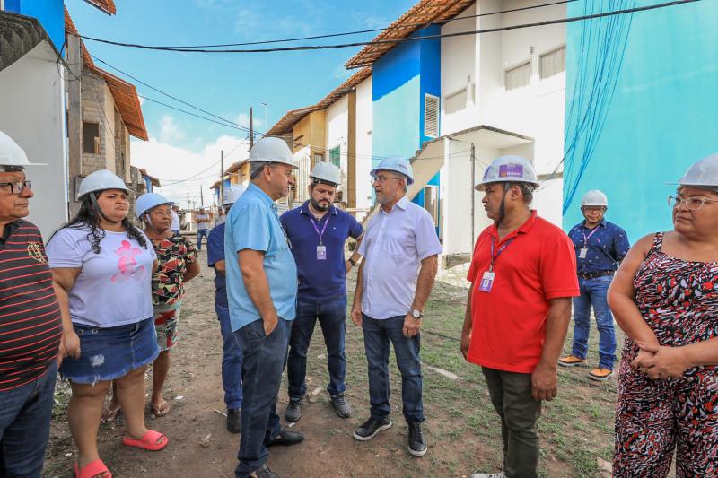 Servidores e o titular da Secretaria Municipal de Habitação (Sehab), Rodrigo Moraes, órgão responsável pela execução do empreendimento, acompanharam a visita do prefeito Edmilson no lado dos futuros beneficiários do residencial.