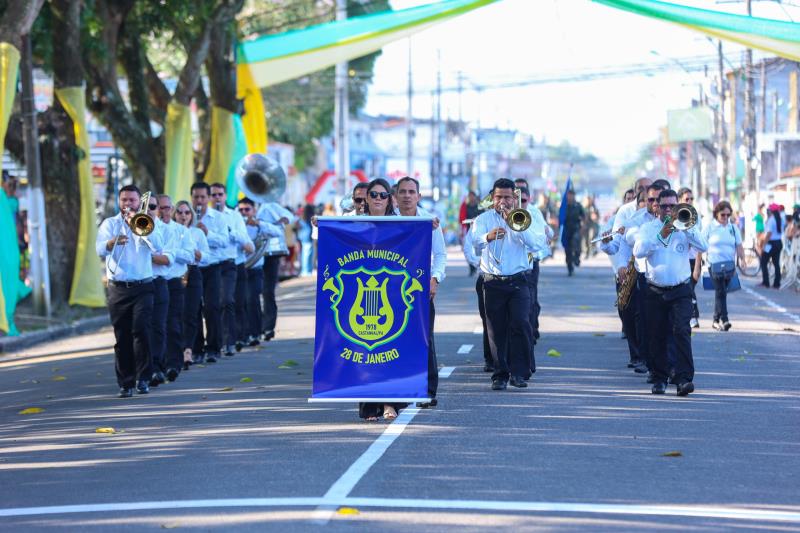 O desfile cívico e escolar foi puxado pelas bandas marciais das escolas: Maria da Encarnação, Pedro Coelho da Mota, Latif Jatene, Maria Inês Costa, Ana Paula dos Santos, Francisco Espinheiro Gomes, Geogina Nascimento, Leão de Judá, Igreja Assembléia de Deus e os Desbravadores da Igreja Adventista.