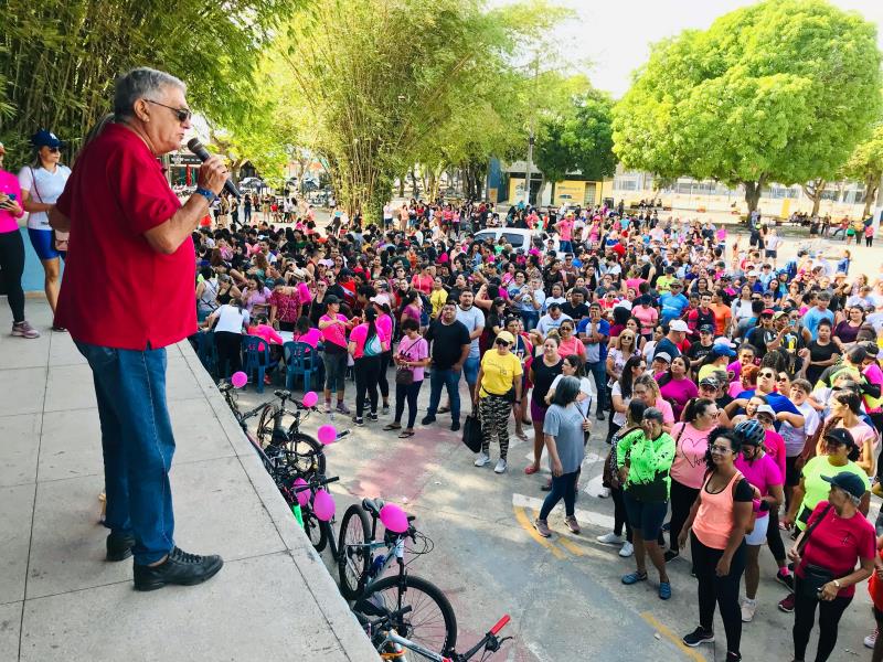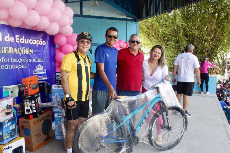 Evento realizado na manhã de quarta-feira,11, pela Secretaria Municipal de Educação (SEMED), em parceria da Secretaria Municipal de Esportes (SEMEL) teve início às 07 da manhã, com um passeio ciclístico, que saiu da Praça do Cristo, até a Praça do Estrela, onde aconteceu o sorteio de vários prêmios, com a presença do prefeito Paulo Titan e do vice-prefeito, Ênio Monteiro, que pedalou junto com os professores.