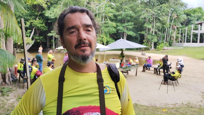 “É um prazer estar recebendo essa equipe que veio para observação de pássaros e para treinamento de condutores da região para que possam dar suporte a turistas, residentes e valorizar o que a gente tem de mais encantador e bonito na região, que são os pássaros, as aves, as flores, a selva em si”, informou Silas Tavares da Fonseca, proprietário do eco parque, que iniciou há cerca de dois anos e será aberto ao público no próximo ano, com gastronomia típica do Xingu, trilhas, piscina para adultos e crianças, banho no Igarapé Ambé, entre outras atividades.