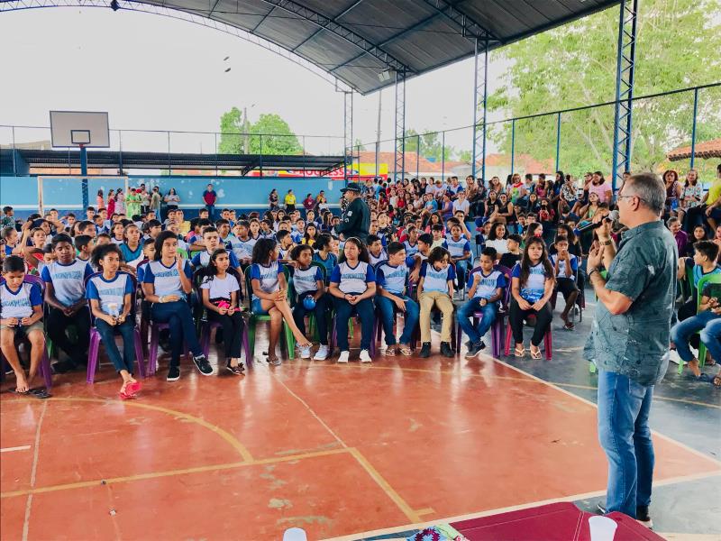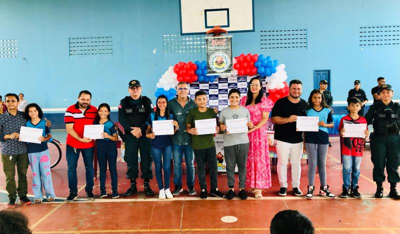 A certificação dos trezentos alunos das Escolas Municipais Ana Paula dos Santos, no Jaderlandia e Raimunda Maia, no Conjunto Rouxinol, que participaram do curso Programa Educacional de Resistência às Drogas e à Violência (Proerd), aconteceu na manhã desta quarta-feira, 06.