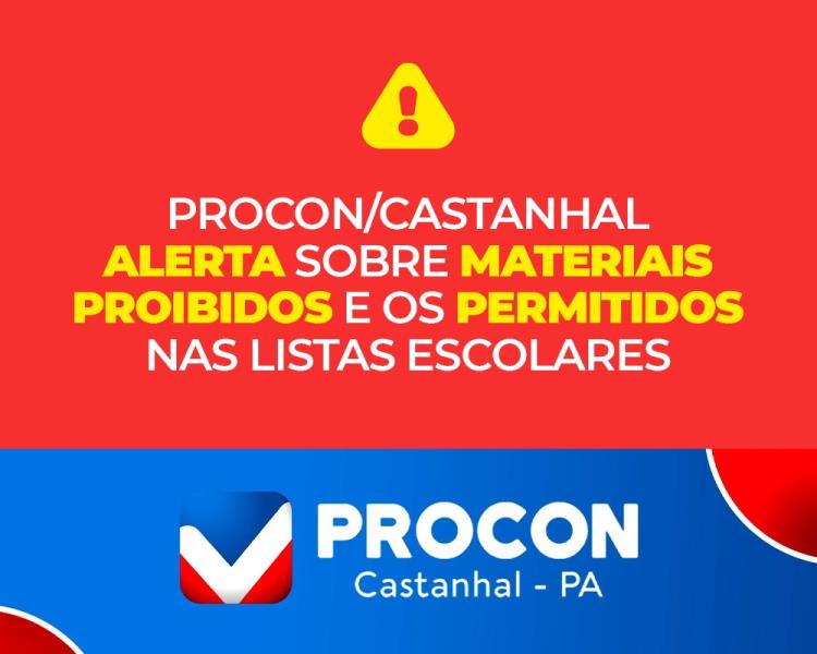 Para manter a população de Castanhal informada, especialmente, pais e responsáveis de alunos, o Procon/Castanhal divulga a lista de materiais sólidos proibidos, permitidos, de uso exclusivamente individual, além de um conjunto de observações que devem ser levadas em conta na hora de adquirir o material escolar.