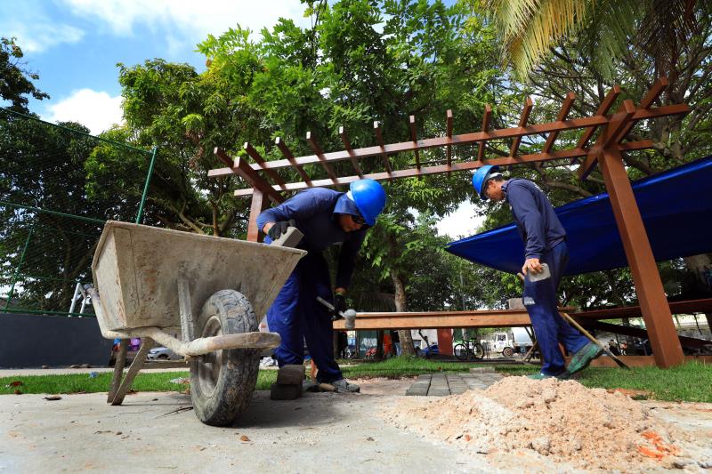 Com prazo de entrega para no máximo 45 dias, as obras de reforma da Praça do Jaú, no bairro da Sacramenta, seguem em ritmo acelerado, como o prefeito Edmilson Rodrigues pôde conferir na manhã desta quinta-feira,1, em visita ao local.