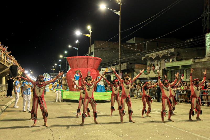 Com o enredo “Carabao segredo da multiplicação, o Búfalo que Vale Ouro, o desfile mostrou símbolos, personagens, cores e sabores que remetem à Ilha do Marajó, em uma reedição do enredo que a escola levou para a avenida em 2008.