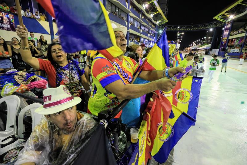 “É uma sensação muito intensa estar na avenida. O aniversário é nosso, mas o público que ganhou um baita espetáculo como presente. Eu não tenho palavras pra explicar o tanto de emoção que sentimos. O Rancho é a primeira escola do Pará e me sinto honrado por estar levando o nome da escola e de ter entregado samba no pé nessa aldeia”, declara Leandro Santos, porta-estandarte da escola de samba mais antiga do Pará.