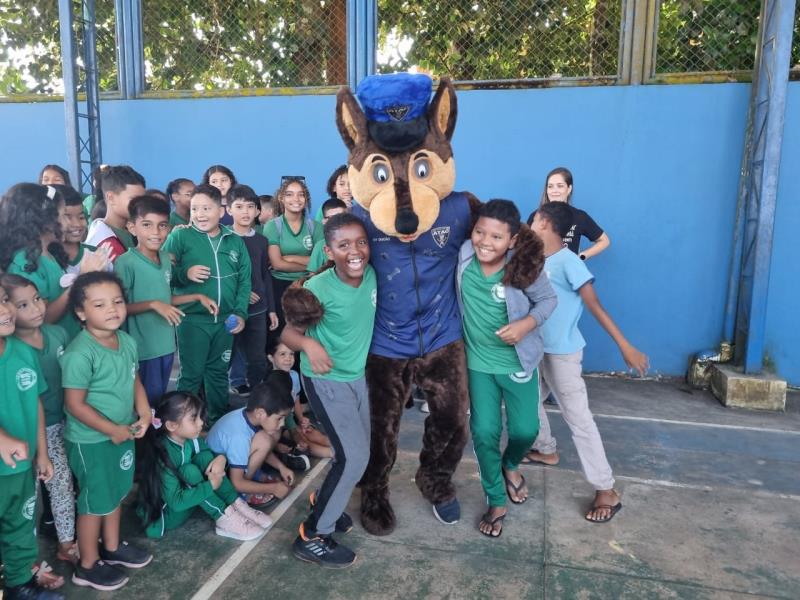O Grupamento de Ações Táticas com Cães (Atac), fez uma simulação de segurança preventiva com auxílio do cão de guarda e proteção Hagi, da raça pastor belga malinois, de 1 ano e oito meses. O mascote Ducão também prestigiou o evento e distribuiu lápis decorados para a garotada.