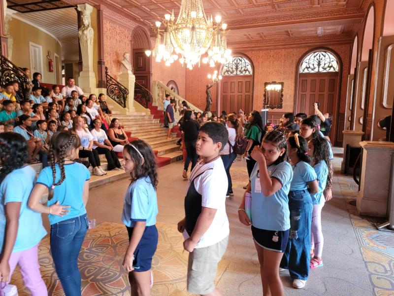 A ação, coordenada pelo Núcleo de Arte, Cultura e Educação (NACE)), vinculado à Semec, contou com a presença de 220 estudantes das escolas do território insular de Belém, que se deslocaram de barcos e de ônibus escolar para chegar ao imponente prédio do Teatro da Paz, construído em 1878, na praça da República em Belém.
