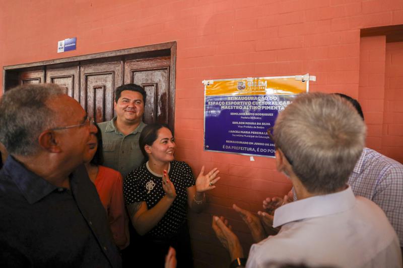 A placa de reinauguração foi descerrada pelo prefeito de Belém, Edmilson Rodrigues; pela secretária municipal de educação, Araceli Lemos; pelo filho do maestro Altino Pimenta, Paulo Pimenta; e dois alunos da escola Palmira Gabriel, Paulo André e Camile Gabriele.