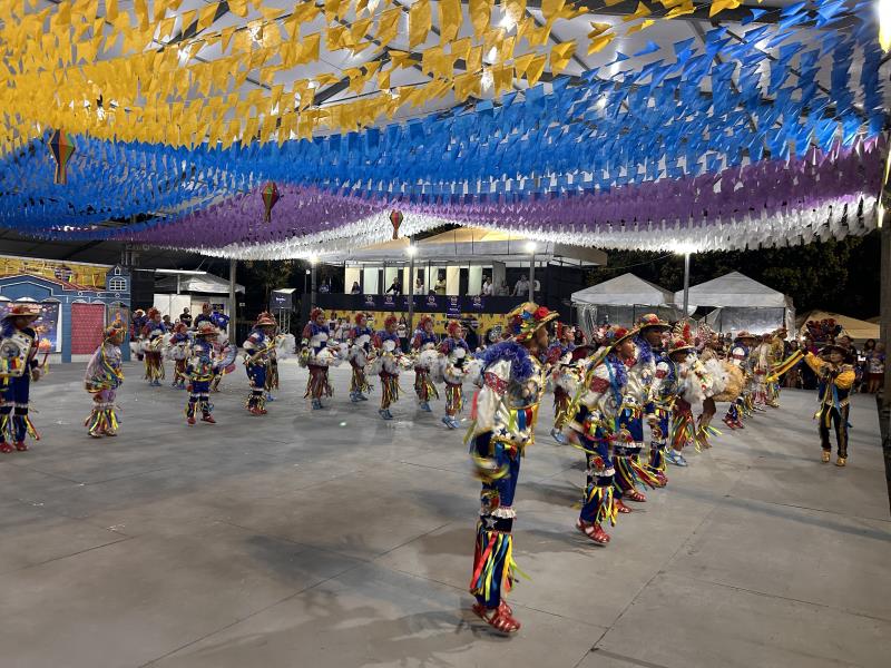 A programação do Arraial 2024 da Prefeitura de Belém, organizada pela Fundação Cultural de Belém (Fumbel), ofereceu ao público na noite desta sexta-feira, 21, as apresentações das quadrilhas juninas mirins. Com uma programação diversa, pensada para toda a população, quadrilhas, brincantes, dançarinos, artistas e músicos se apresentaram nos palcos da praça Waldemar Henrique.