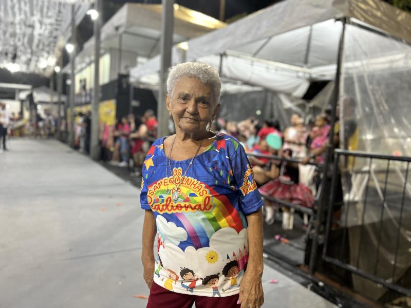 A costureira Nazaré Santos, de 67 anos, faz parte da história dos Sapequinhas. Ela é responsável pelos trajes do grupo, desde sua criação, em 2017. “É muito lindo ver toda essa criançada dançando e participando da nossa quadrilha, que eu carrego no meu coração. Eu sempre faço os trajes de coração, com muito carinho e pensando no melhor pra todos”.