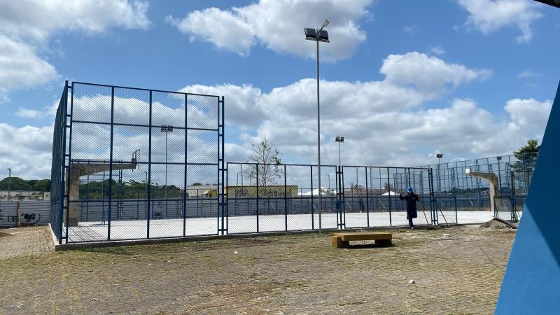 Serviços - Os serviços na Dorothy Stang incluem a manutenção das três quadras, recuperação do alambrado, pintura, reposição de peças danificadas (aro e tabela do basquete), recuperação de trechos danificados do piso, aumento de 1,20 metro do alambrado da quadra aberta e arena.