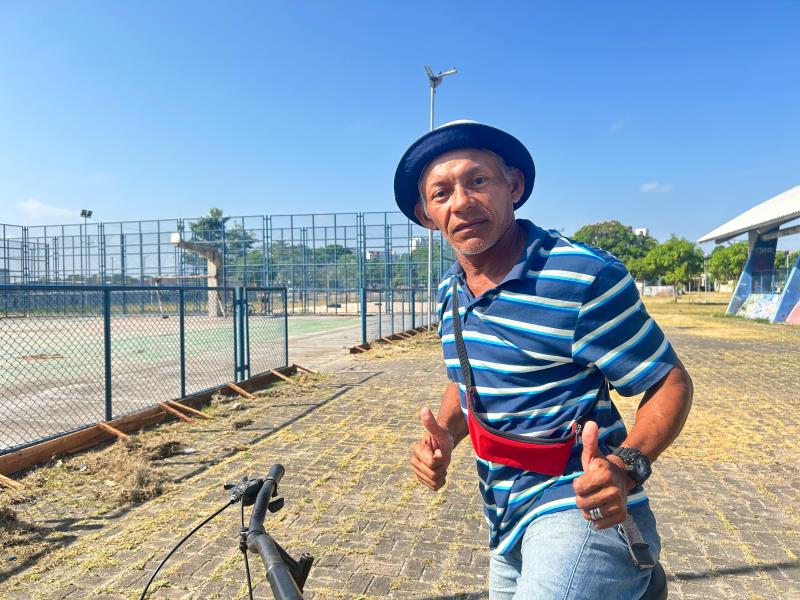 “Falaram que este espaço seria destruído, mas estou vendo que está sendo reformado. Estou gostando muito, porque vejo que está sendo reconstruído, revitalizado. É um espaço que vai ficar melhor ainda para as crianças e às escolinhas que têm por aqui também. Agora, as pessoas precisam ajudar a cuidar e zelar”, afirma o artesão Antônio Pereira, que fundou uma escolinha próximo à praça onde seus alunos treinam.