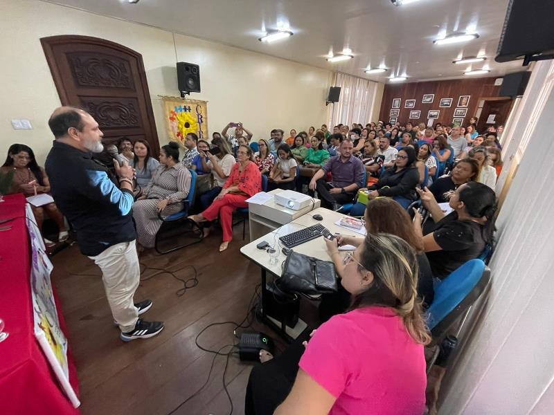 A Secretaria Municipal de Educação (Semec) realizou, nesta segunda-feira, 9, um encontro formativo com diretores da rede municipal de ensino. O evento foi realizado no Centro Educacional de Inovação Tecnológica e Computacional e reuniu gestores, com o objetivo central de fortalecer o processo de inclusão nas escolas municipais, buscando alinhar a atuação dos diferentes profissionais da educação em prol de uma rede mais inclusiva e acolhedora.