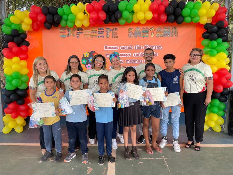 Durante o evento, a direção da escola homenageou seis estudantes que participaram da final da II Olimpíada e Paralimpíada do Matemática (II OPM), da rede Municipal de Educação de Belém.