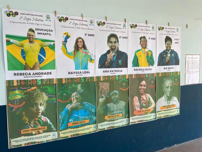 Entre os destaques, estavam os trabalhos dos estudantes que exploraram suas próprias raízes culturais, por meio de pinturas, esculturas, textos e ilustrações. Um mural coletivo, criado por estudantes, chamou a atenção ao retratar figuras de mulheres negras que marcaram o esporte brasileiro neste ano de 2024 e artistas de nosso estado, com mensagens de empoderamento e igualdade.