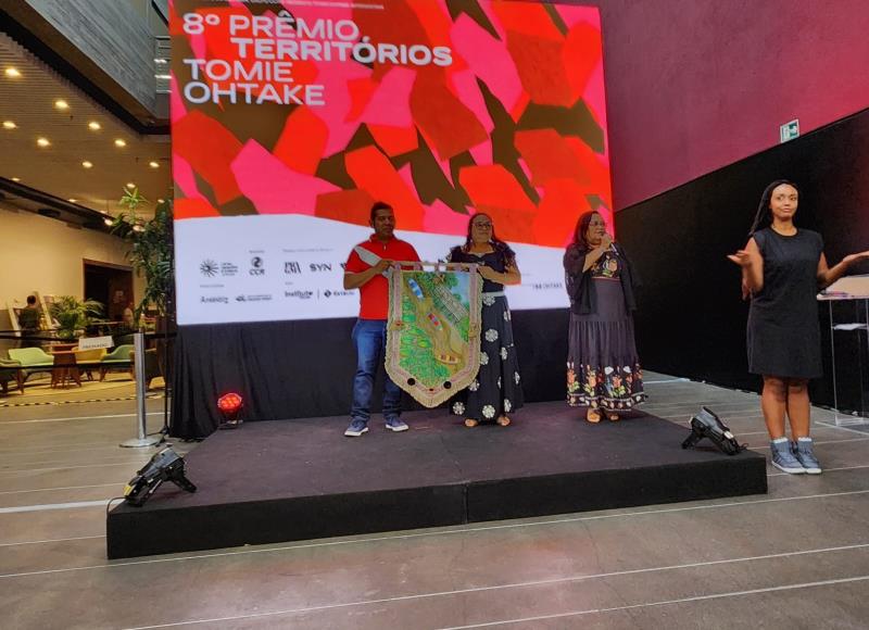 Miguel Picanço, Ângela Pantoja, Adriana Monteiro e Carlos Santos participaram da solenidade da 8ª Edição do Prêmio Territórios Tomie Ohtake, que busca ações pedagógicas de escolas públicas brasileiras integradas a seus territórios, desenvolvendo a construção e a valorização dos saberes presentes em suas comunidades.