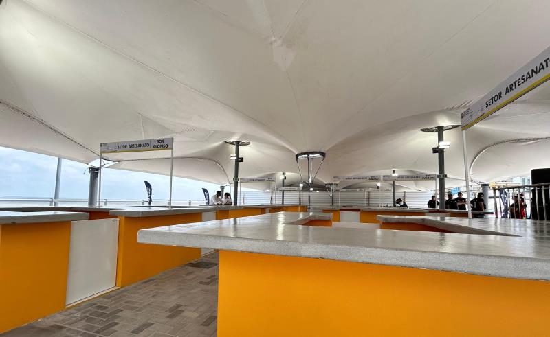 A nova cobertura do Ver-o-Peso é também mais leve e garante maior conforto térmico, translucidez e resistência. Além da cobertura em lona e novos boxes, toda a feira tradicional do Ver-o-Peso conta com novas instalações elétricas e hidráulicas, nova pavimentação, iluminação com LED e especial, além de todas as prevenções contra incêndio.
