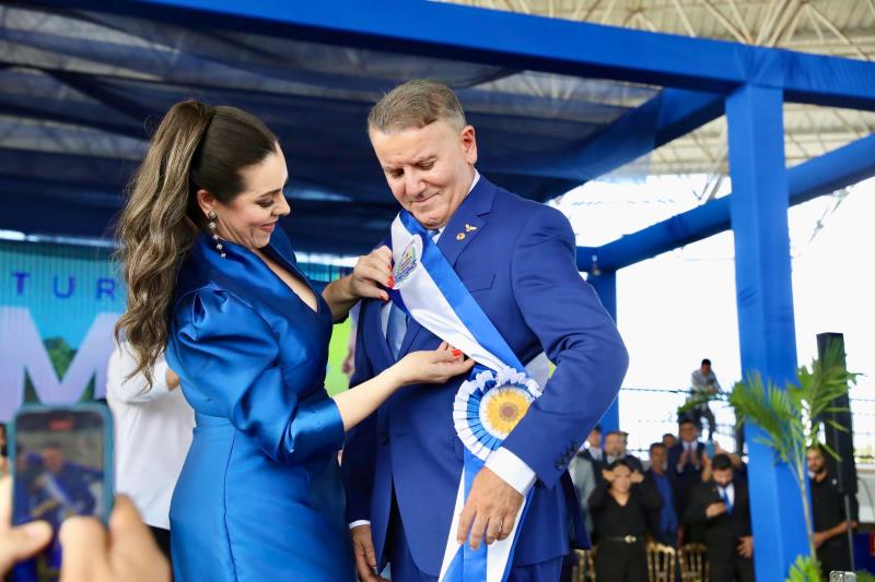 Na Grande Praça do Espaço Cultural José Gomes Sobrinho, a ex-prefeita Cinthia Ribeiro realizou a transmissão da faixa para o atual prefeito de Palmas, Eduardo Siqueira Campos. A solenidade aconteceu na tarde desta quarta-feira, 1º de janeiro de 2025. O mini prefeito e filho mais novo do gestor, Gael Siqueira, também recebeu a faixa após a transmissão oficial de Cinthia para Eduardo.