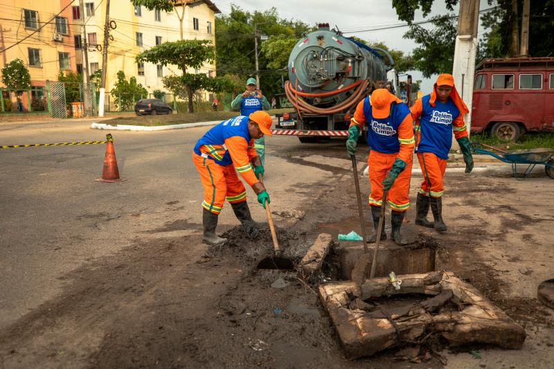 Além da modernização da iluminação pública, a Prefeitura de Belém, por meio da Secretaria Municipal de Saneamento (Sesan), realizou serviços de microdrenagem em um bueiro na Avenida Perimetral. Um caminhão hidrojato foi usado para desobstruir a rede de drenagem e minimizar alagamentos na área, dentro da megaoperação “Belém Limpa”.