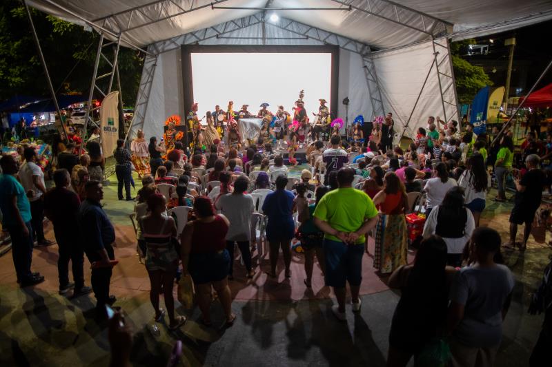 Centenas de pessoas lotaram a praça Benedito Monteiro, situada na Travessa Ezeriel Mônaco de Matos, um local popular de gastronomia, atividades físicas e culturais. O famoso Boi Veludinho e seus mascarados e cabeçudos abriram a ação cultural com desfiles e dança; em seguida o Boi Curumim fez sua apresentação com toada e dança.