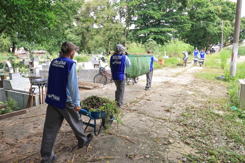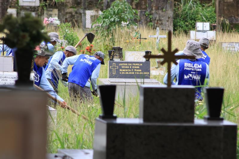 A programação de limpeza nos cemitérios de Belém conta com o apoio do Governo do Pará, por meio da Secretaria de Administração Penitenciária (Seap), que oferece suporte logístico e de segurança para que 100 custodiados do sistema prisional atuem nos serviços.