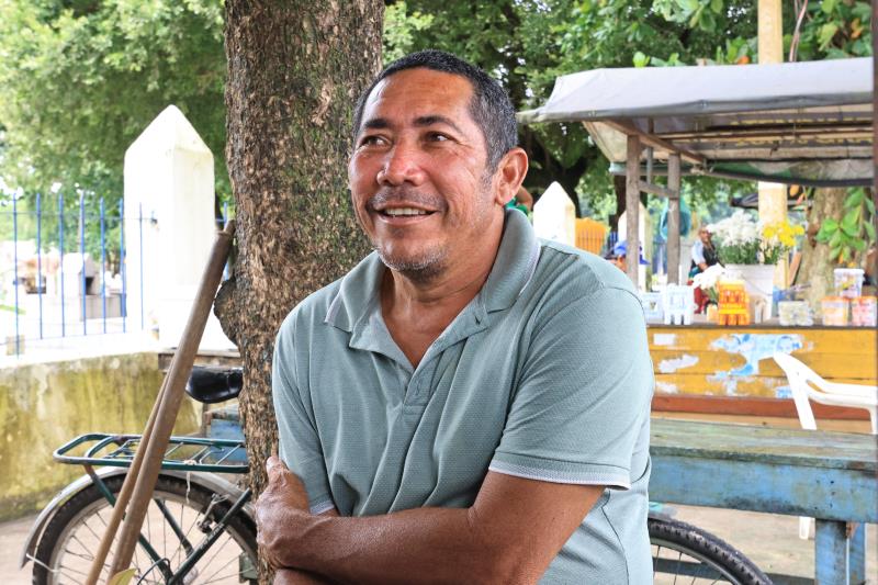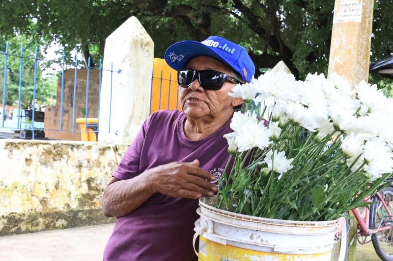 Há 30 anos, o comerciante Francisco Duarte da Silva vende flores em frente ao Cemitério São Jorge, no bairro da Marambaia, em Belém (PA). O espaço passa atualmente por uma intensa ação de limpeza realizada pela Prefeitura de Belém, por meio da Secretaria de Zeladoria e Conservação Urbana (Sezel), dentro do programa Belém Limpa.