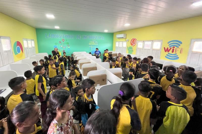 Juruti, março de 2025 - A Alcoa Juruti inaugurou na última terça-feira (25), o laboratório de informática com equipamentos de última geração, na Escola Municipal Profª Lígia Meireles da Cunha, situada na vila Muirapinima, na região de Juruti Velho, zona rural do município. A iniciativa faz parte do Programa de Apoio a Projetos Locais do Instituto Alcoa, que teve aprovação no edital de 2024.