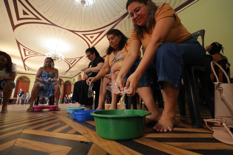 Além da palestra, a manhã foi marcada por um coffee break, seguido de práticas integrativas promovidas por alunos do curso de Terapia Ocupacional da Uepa. As participantes vivenciaram momentos de relaxamento com massagens, automassagem, terapia auricular e spa dos pés. Antes das atividades, foi realizada uma roda de conversa para troca de experiências sobre as rotinas de cuidados no dia a dia.