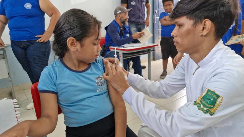 "Eu sou muito corajosa, não tenho medo de agulha. A vacina não traz o vírus pra gente". Com essa disposição, Davila Silva Farias, de 8 anos, estudante do 3º ano da Escola Municipal de Ensino Fundamental Solerno Moreira, no bairro da Terra Firme, estava esperando a vez dela para tomar a vacina contra a Covid-19. O imunizante estava sendo oferecido na escola, na manhã desta quinta-feira, 29, através do Programa Saúde na Escola (PSE), da Prefeitura de Belém.