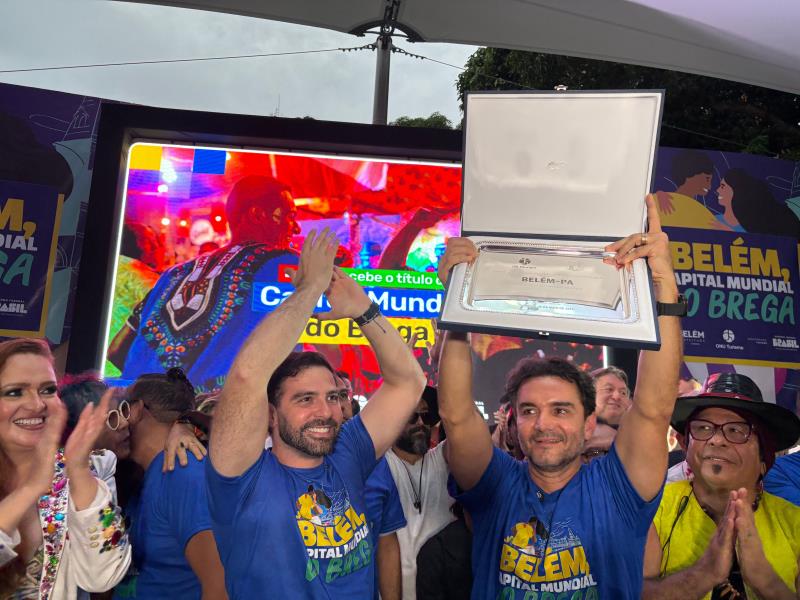Nesta quinta-feira (5), Belém recebeu oficialmente o título de Capital Mundial do Brega concedido pela ONU Turismo. A honraria foi entregue pelo ministro do Turismo e presidente do Conselho da ONU Turismo, Celso Sabino, ao prefeito de Belém, Igor Normando.