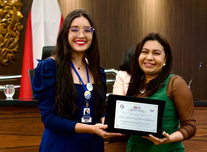 Ao receber uma das placas de homenagem, a Professora Eldilene Barbosa, uma das homenageadas, expressou sua emoção e visão de futuro: