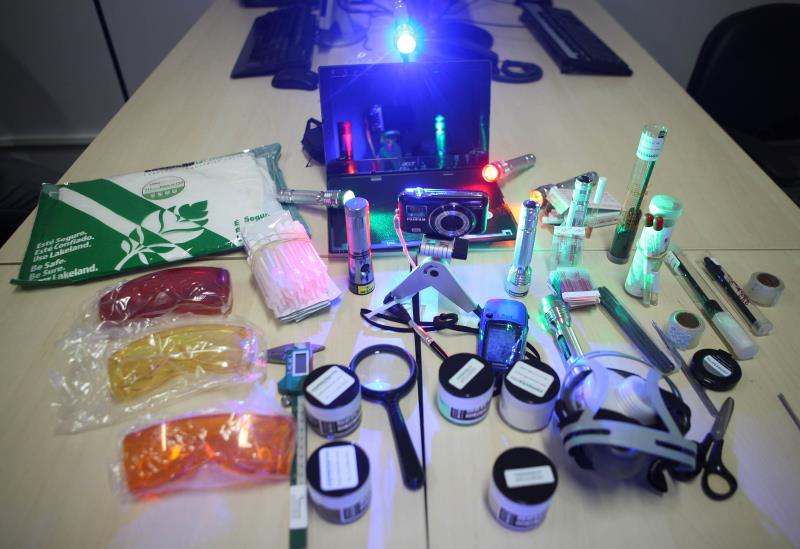 Outro ganho nesta área foi a aquisição das maletas de local de crime, equipadas com lanternas de luz forense (utilizadas para detectar vestígios como sangue, líquido espermático e qualquer substância biológica invisível a olho nú), componentes e reagentes químicos (muitos deles utilizados para constatar a natureza de entorpecentes apreendidos), câmeras digitais, laptops com programas específicos para local, GPS’s, trenas a laser e itens de proteção individual, como luvas e máscaras. “Esses equipamentos novos representam um grande ganho na questão da resolutividade dos crimes de homicídio”, diz Salgado.