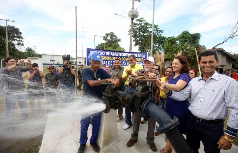 Após ser saudado por uma banda marcial do município, Simão Jatene acionou o sistema, que leva água em maior quantidade e com mais qualidade à população. Mais de 200 novas ligações domiciliares foram feitas graças às melhorias realizadas no sistema de abastecimento.