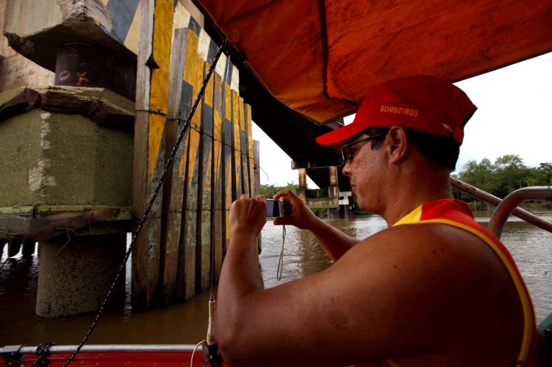 Uma equipe do setor de Engenharia Legal do Centro de Perícias Científicas Renato Chaves realizou, na tarde desta quinta-feira (27), a perícia para avaliar os danos causados na estrutura da ponte “Enéas Pinheiro”, que liga os distritos de Icoaraci e Outeiro, em Belém, depois que uma balsa colidiu com a estrutura da ponte na madrugada desta quinta-feira.